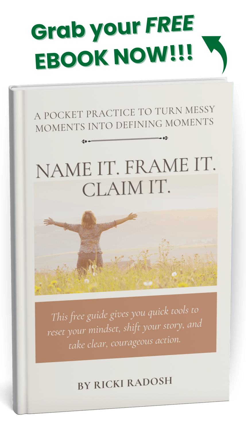 She helps people navigate life’s messier chapters with strength and intention. After years of minimizing her voice, Ricki discovered she’d been quietly leading all along, and decided to do it on purpose. She created Name It. Frame It. Claim It. to help others turn setbacks into defining moments, and pairs it with her B.E.S.T. method to make courage practical: feel your body, tell the truth about your emotions, edit the self-talk, then take one honest action.